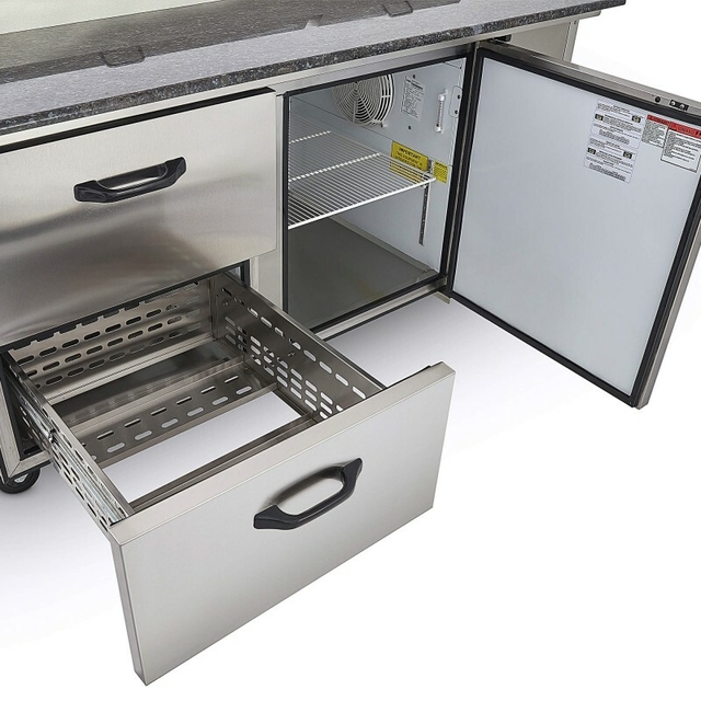 Mesa Fría de Preparación – 2 Cajones, 1 Puerta, 9 Insertos GN y Cubierta de Granito