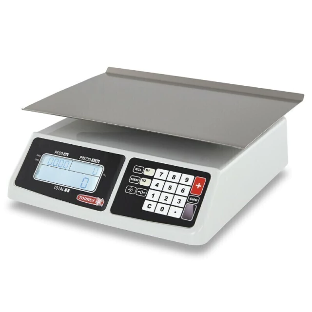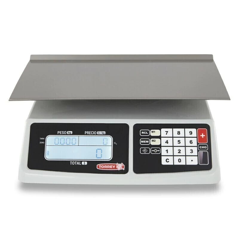 La báscula peso-precio-total Torrey está diseñada para negocios que necesitan mayor precisión, autonomía y durabilidad. Con su plato de acero inoxidable más grande y sistema tri-rango, garantiza un pesaje exacto y confiable para todo tipo de productos. Ideal para carnicerías, fruterías, abarrotes y supermercados.