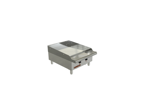 Superficie de cocción en acero cold rolled con área útil de 0.586 m de frente x 0.560 m de fondo, ideal para carnes, verduras, tortillas, pescados y más.