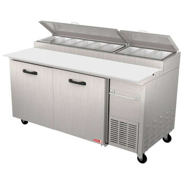 Perfecta para restaurantes, barras de ensaladas, pizzerías, caterings y cocinas industriales que requieren eficiencia y control de temperatura durante la preparación.