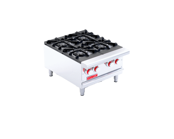 Equipados con quemadores octagonales de hierro fundido con tapa desmontable, cada uno con una potencia de 29,000 BTU/h, ideales para cocciones intensas y continuas.