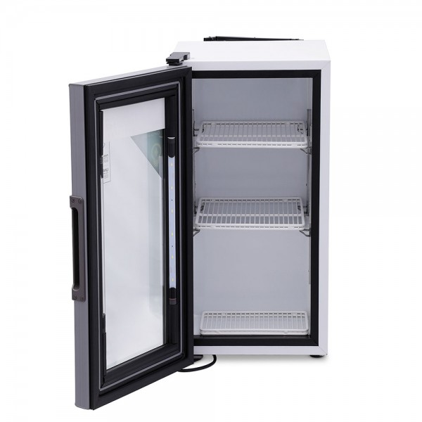 Está equipado con iluminación LED de alta intensidad, lo que mejora la presentación de los productos y reduce el consumo de energía. Las parrillas ajustables permiten personalizar la distribución interior según las necesidades del negocio.