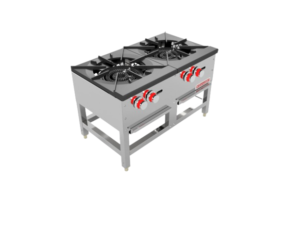 2 quemadores de hierro fundido de alta potencia con salida de 70,000 BTU/h cada uno, perfectos para cocinar a gran escala.