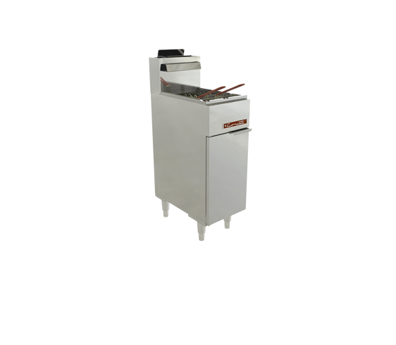 Capacidad de 16 a 19 litros de aceite, ideal para frituras continuas en operaciones medianas.